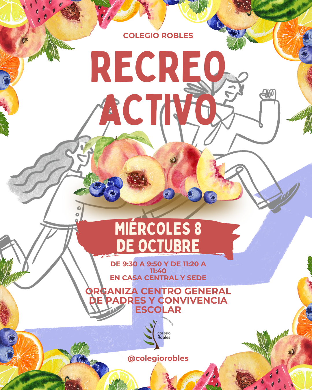 Este miércoles 08 de octubre durante los dos recreos de la mañana (09:30 a 09:50 hrs. y 11:20 a 11:40 hrs respectivamente) el Centro General de Ma-Padres y Apoderados junto a las Coordinaciones de Convivencia de Casa Central y Sede han preparado recreos activos.